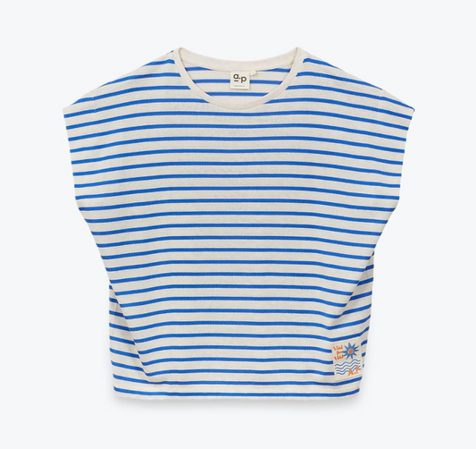 T-shirt jersey de coton marinière bleu