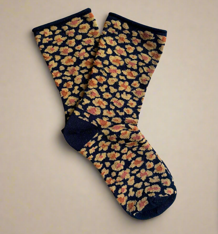 Chaussettes léopard paillettes noires