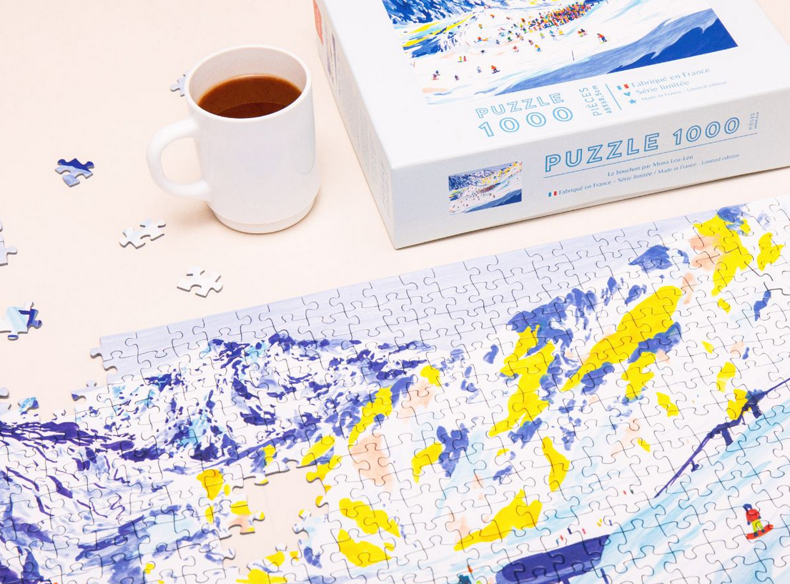 Plongez dans l’ambiance animée des pistes de ski avec le puzzle Le Bouchon par Mona Leu-Leu. Un panorama coloré de montagne à reconstituer en 1000 pièces, 100 % fabriqué en France.