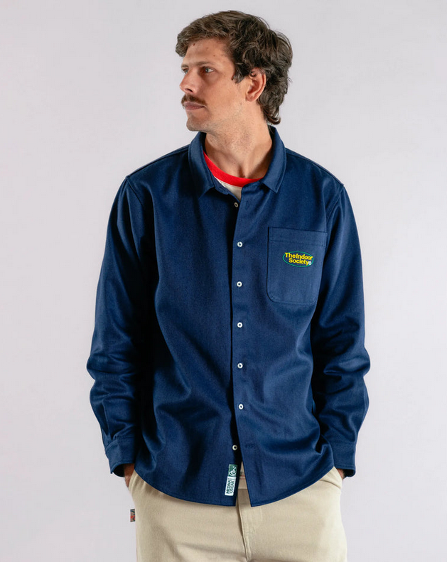 Devant : une poche plaquée brodée "The indoor Society", contrasté.