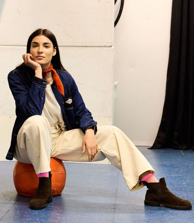 Ultra lookée, intemporelle, on valide totalement cette veste en denim contrasté brute façon worker. Un iconique.